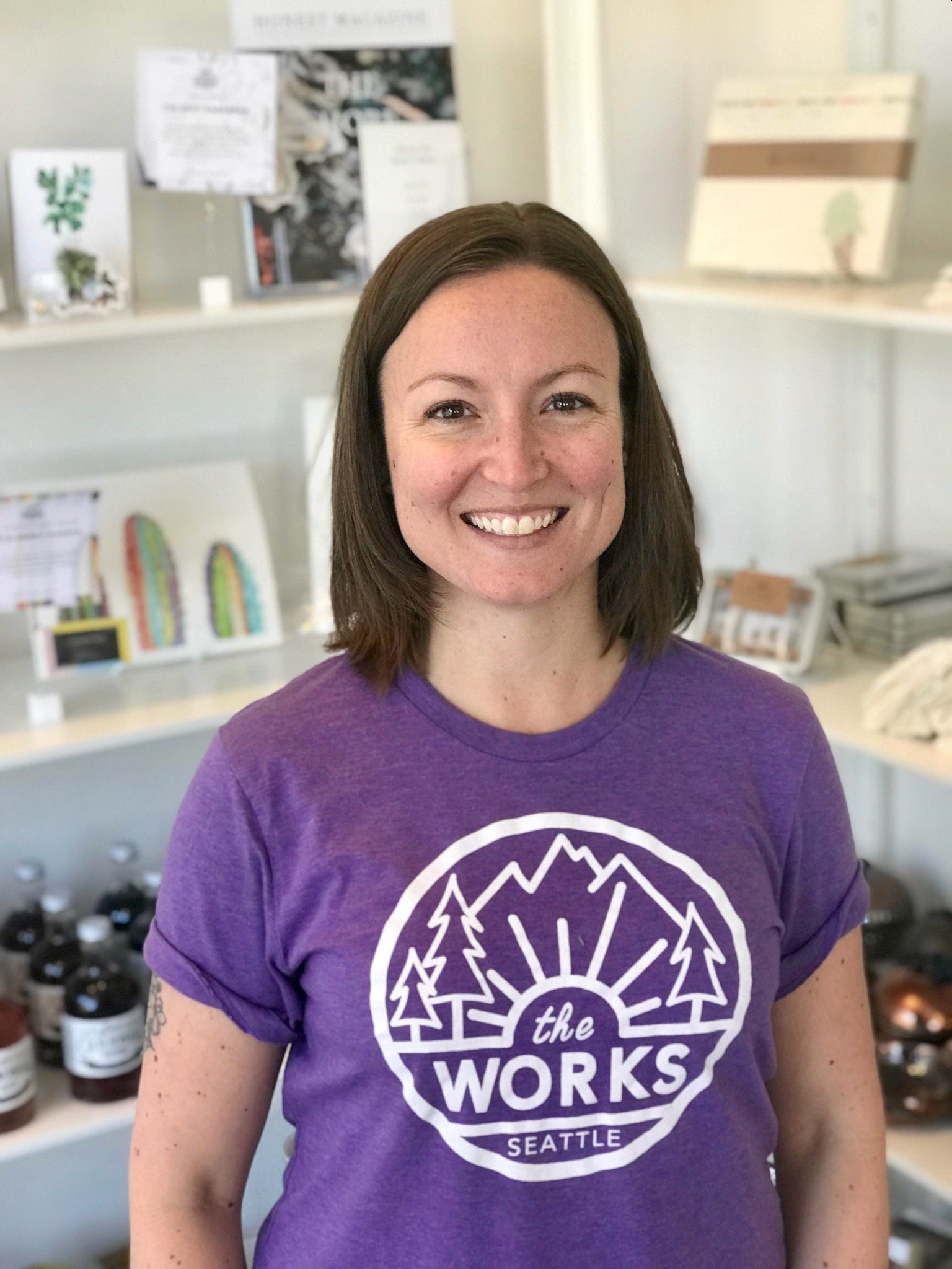 A natural connector, self-starter (she even taught herself how to knit from a library book during summer break in high school!), and multitasking mama to twins, Kellie is so grateful for this opportunity to lead The Works and be a part of this amazing community.